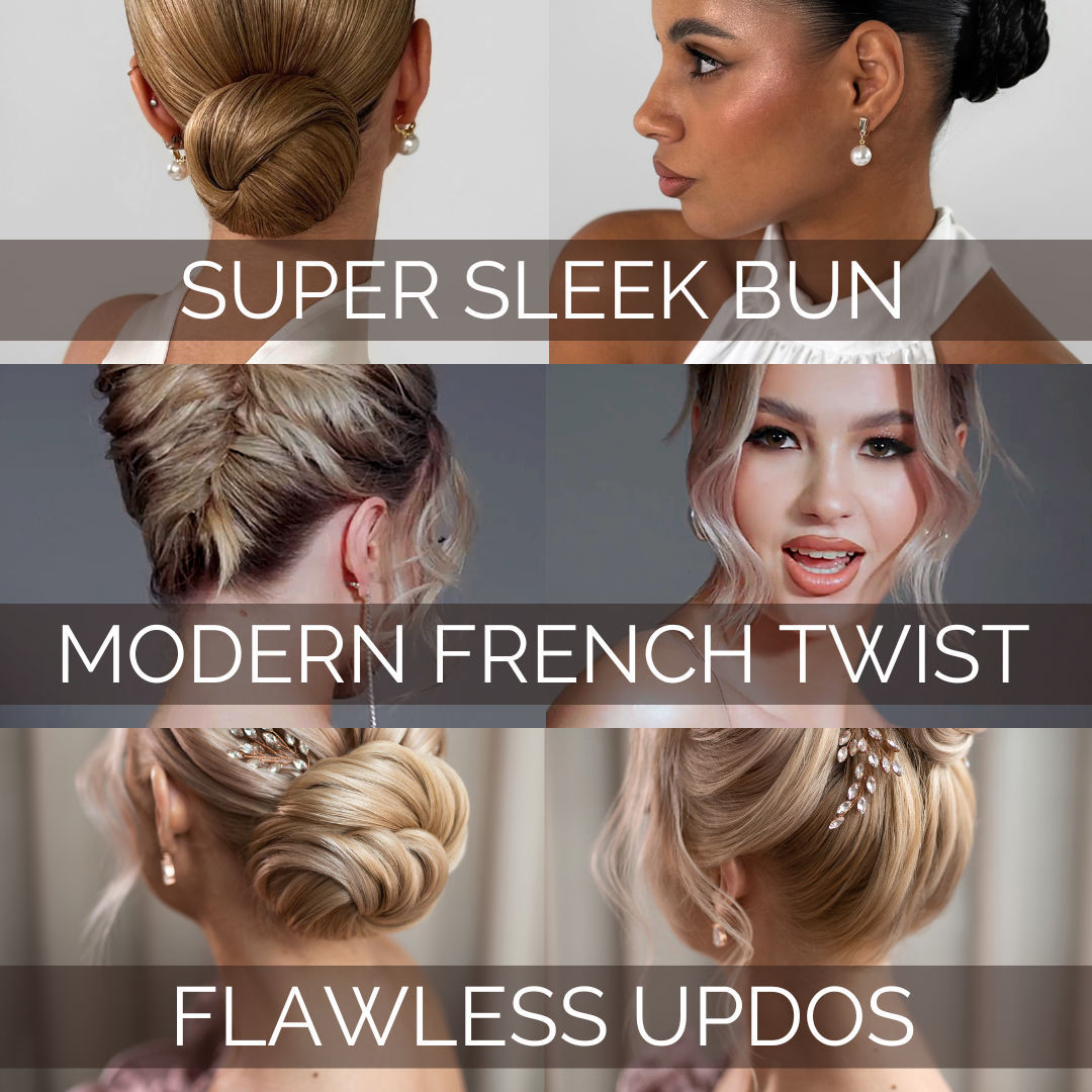 Pakiet obejmujący trzy kursy kompleksowo wyczerpujące zagadnienie upięć okolicznościowych: najnowszy kurs SUPER SLEEK BUN, a także MODERN FRENCH TWIST oraz FLAWLESS UPDOS. Aby zapoznać się ze szczegółami kursów, kliknij w ich nazwy.